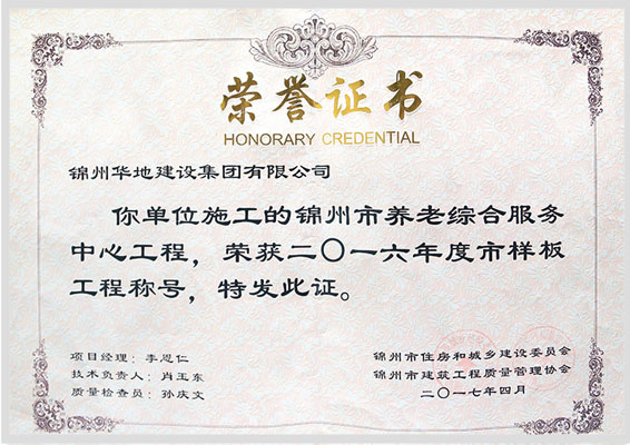 企業(yè)10余年開拓進(jìn)取過程中先后榮獲“遼寧省建筑業(yè)優(yōu)秀企業(yè)”“遼寧省AAAAA級信用企業(yè)”“遼寧省建設(shè)工程優(yōu)質(zhì)結(jié)構(gòu)企業(yè)”“遼寧省建設(shè)工程世紀(jì)杯(省優(yōu)質(zhì)工程)企業(yè)”連續(xù)6年榮獲“遼寧省守合同重信用企業(yè)”,連續(xù)5年榮獲“重點(diǎn)工程招投標(biāo)領(lǐng)域AAA級信用企業(yè)”,連續(xù)10年榮獲“錦州市先進(jìn)企業(yè)”及安全生產(chǎn)目標(biāo)管理先進(jìn)單位”“優(yōu)秀誠信企業(yè)””國家AAAA級旅游景區(qū)””省級生態(tài)旅游示范區(qū)””遼寧省省級旅游度假區(qū)”等榮譽(yù),并通過質(zhì)量管理體系、環(huán)境管理體系、職業(yè)健康安全管理體系認(rèn)證。