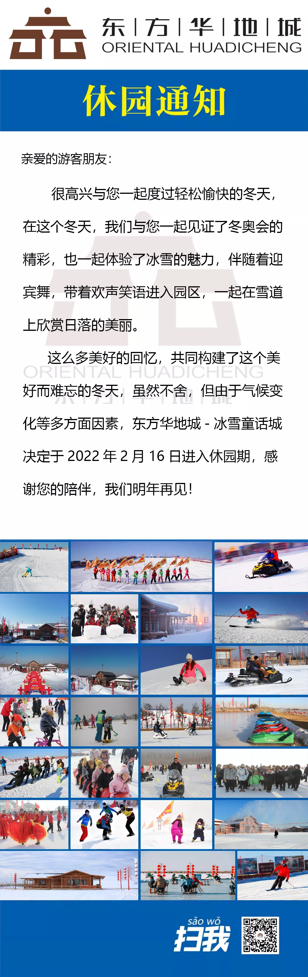 公告:東方華地城冰雪大世界休園公告|我們明年再見(jiàn)!-華地動(dòng)態(tài)-錦州華地集團(tuán)有限公司