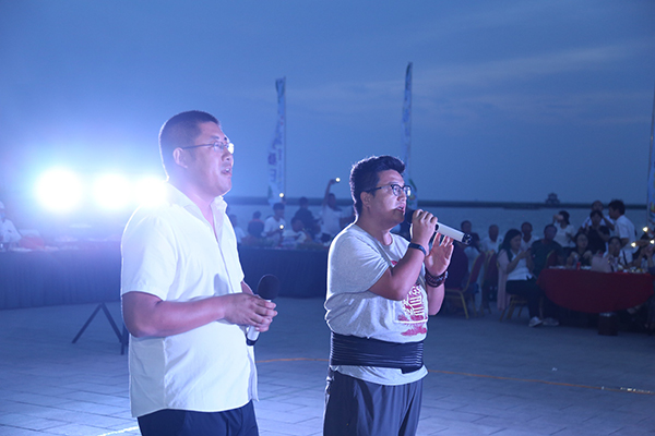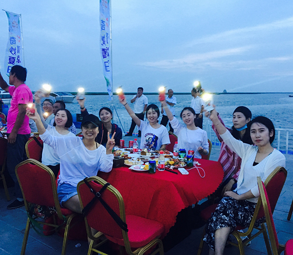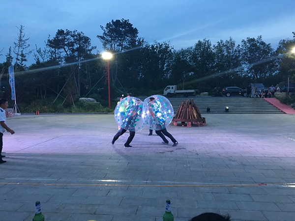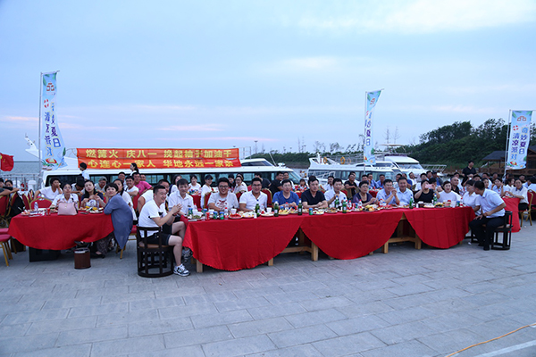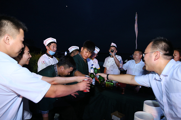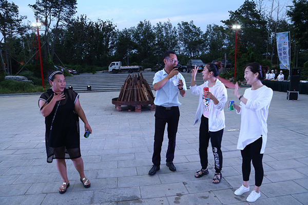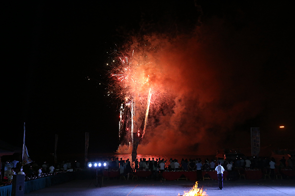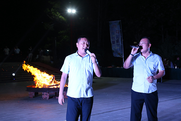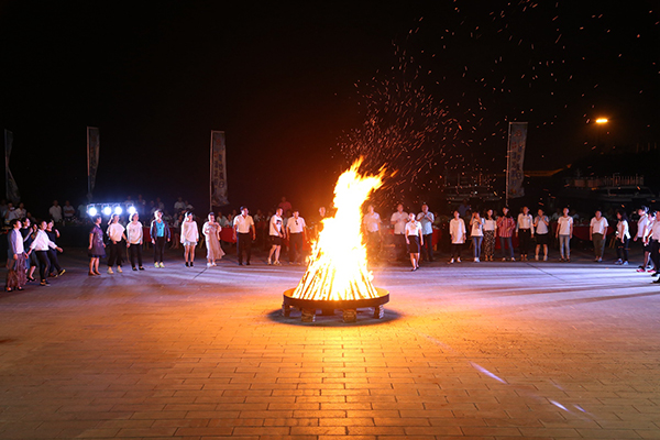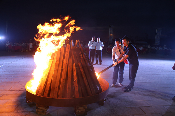 領(lǐng)導(dǎo)為大家點(diǎn)燃篝火