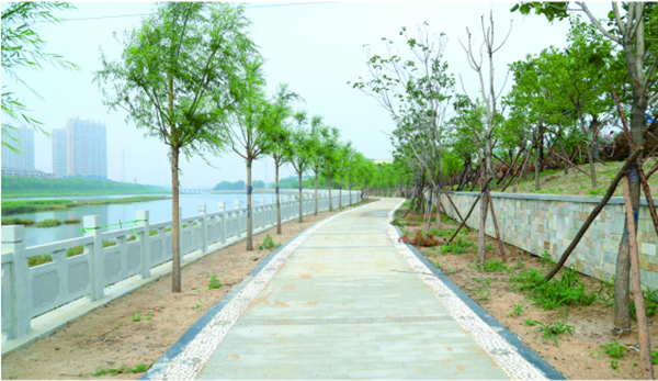 錦州市女兒河生態(tài)修復(fù)工程建設(shè),總面積185743平方米,岸坡總長4210米,道路及鋪裝面積23000平方米,給排水管道4200米,風(fēng)景石2040噸,安裝太陽能庭院燈200盞;種植樹木9000株,修剪籬、地被等54762平方米,草地36374平方米。